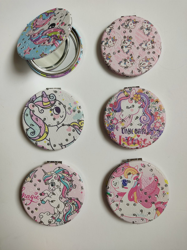 بسته 12تایی آینه کیفی نگین دار یونیکورن(فروش عمده)